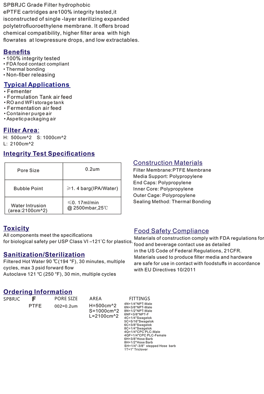 Capsule filter,PTFEmembrane for bioburden reduction