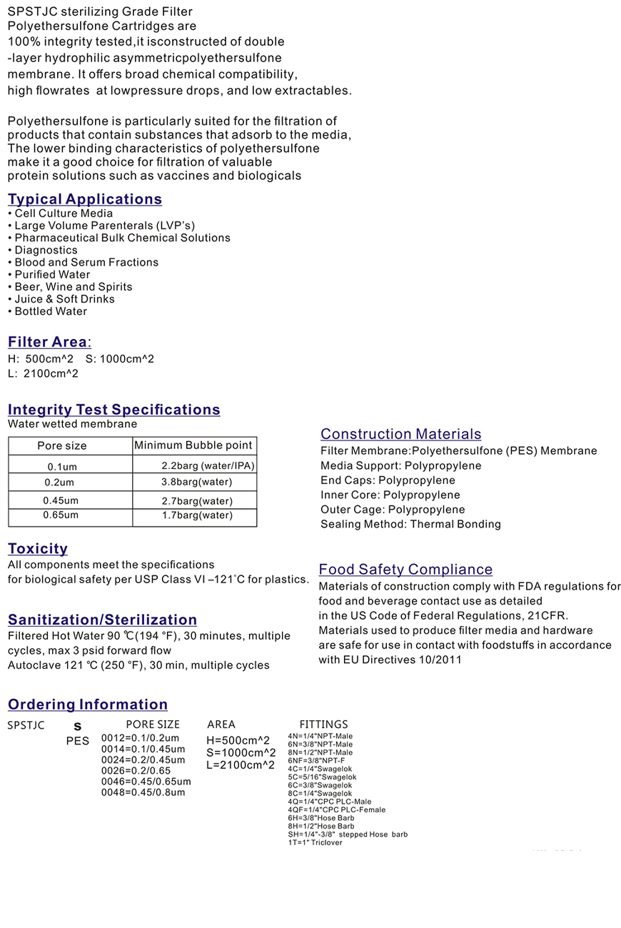 Capsule filter,PES membrane for sterile application
