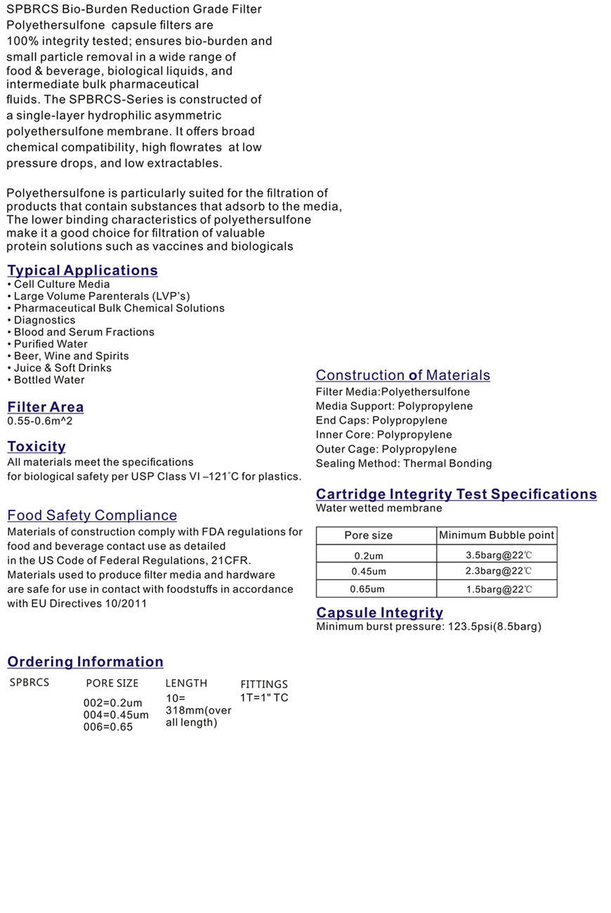 Max. Capsule,PES membrane for bioburden reduction