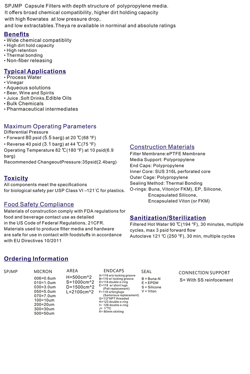 Capsule filter,PES membrane for bioburden reduction