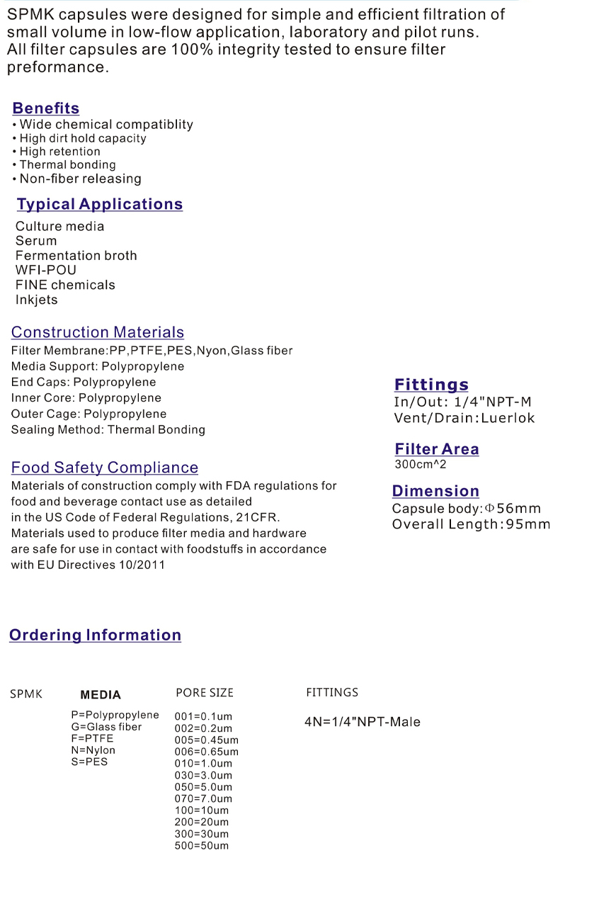 SPMK mini capsule filter